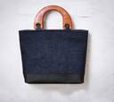 Premium navy blue denim tote bag with black artificial leather base, pacious design (11×8×3 in) perfect for office, shopping & travel, Lightweight, trendy, and comfortable for daily use, ade by Bloomtail – trusted for stylish & budget-friendly handbags