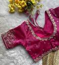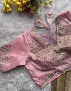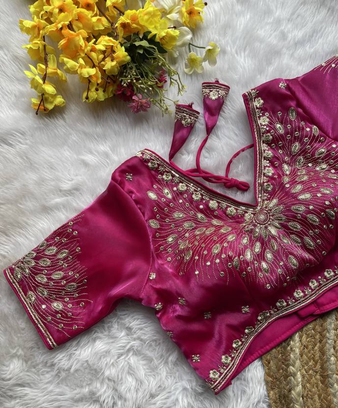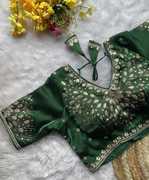 Beautiful Embroidered Sequin Organza Blouse with V-Neck & Half Sleeves – Padded, Back Hook Closure (Size 32''–42'')
