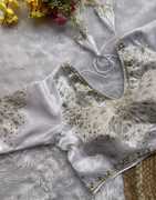 Crafted from premium organza fabric, this half-sleeve blouse showcases exquisite embroidery for a refined and graceful look