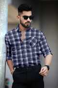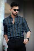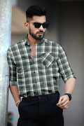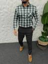 Bloviate Men Color Block Casual Dark Green, White Shirt
