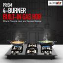 BLOWHOT Prism Auto Ignition Brass Burner, Battery Operated Built – In, Gas Hob Toughened Glass, Aluminium Automatic Hob (4 Burners)
