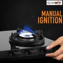 BLOWHOT Sapphire 3 Tornado Brass Burners 5-Year Warranty Built-in Glass Design Toughened Brass Manual Gas Stove (3 Burners)