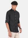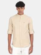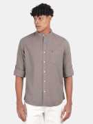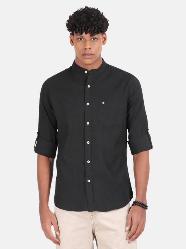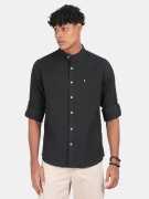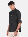 BLU MNKY Men Slim Fit Solid Mandarin Collar Casual Shirt