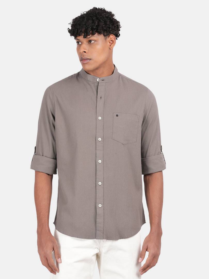 BLU MNKY Men Slim Fit Solid Mandarin Collar Casual Shirt
