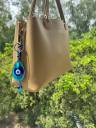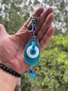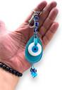 White Evil Eye Stone With Turquoise colour Leather Keychain For Bike/Car