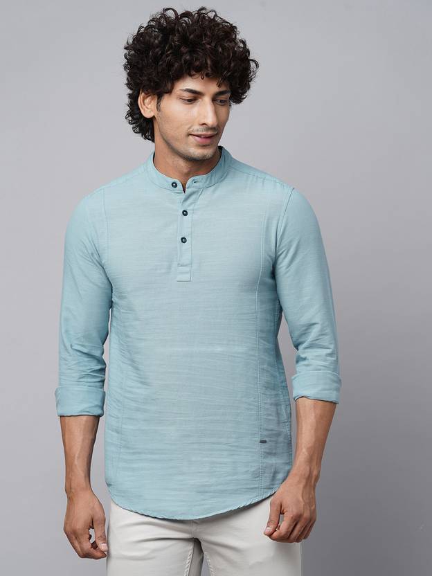 Introducing the BLUE BUDDHA Men's Aqua Blue Cotton Kurta, a perfect blend of comfort and style for your casual wear collection. Crafted with care and attention to detail, this kurta offers a regular fit and a solid pattern, making it a versatile choice for various occasions.