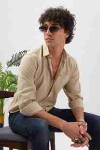 Men Slim Fit Solid Spread Collar Casual Shirt