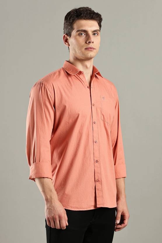 BLUE SQUAD Men Solid Casual Orange Shirt