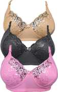 BLUE-WELL Women Full Coverage Non Padded Bra (Gold, Pink, Black)