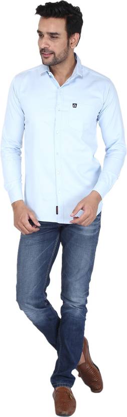 Material- Cotton, Collar Type- Standard collar, Closure Type- Buttoned, Ideal for- Men, Sales Package- 1 Men's Shirt, Fit Type- Slim Fit, Sleeves type- Long sleeve, Color- Sky Blue, Fabric Care- Easy Wash