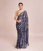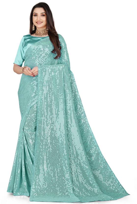 Bluebirdimpex Embroidered Bollywood Georgette Saree (Light Blue)
