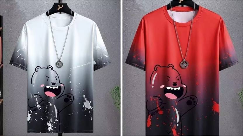 bluecut Printed Men Round Neck Grey, Red T-Shirt