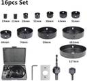 16 pcs Hole Saw Cutting Set Kit Drilling Tool Wood Metal Cutter 19-127mm Mandrels Saws Core Drill Bits Woodworking Mawson 19-127mm Hole Saw Cutter Tool Kit - Set of 16 With carbon steel and heat treated, 16 pcs Hole Saw Kit suitable for the most popular size of ordinary wood, thin PVC board and plastic, which is high precision portable and safety. Suitable for drilling large holes on soft wood, timber, plasterboard etc., but cannot be used to open the sheet metal and stone. This product is used for general common hand drill, easy to operate. Hardened saw teeth are good for accurate and easy cut with the use of electric. Heat Treated HSS,The special gear design makes the hole more accurate. High speed steel teeth for fast and clean cuts. Suitable for normal wood, don’t try it to hard material. It will happen broken. All pieces in the set are heat treated enabling them to be suitable for soft and hard wood, plasterboard, plastic, aluminum and nonferrous metals. Perfect for Hole High precision, smooth cutting edges, especially impact resistance, wear resistance, cutting depth 25 mm. High Speed Teeth – Deep Cuts: Teeth have been designed to create faster, cleaner cuts in a variety of materials without rough/ split edges in your project. A maximum cutting depth of 1” (25mm) allows you to create a range of different-sized holes in thicker materials including desk surfaces, doors, furniture and dry wall easily and with great results Easy Saw Change Wear resistance Material: Carbon Steel Arbor Length: 4cm / 9cm Smooth cutting edges Cutting Depth: 25 mm Especially impact resistance Adapted Machines: Electric drill, Impact drill, Bench drill etc Package Size: 29*14*6 Package Weight: 455gm Package Content 13 × Carbon Steel Hole Saw [Diameter: 3/4"""" (19mm), 7/8"""" (23mm), 1"""" (25mm), 1-1/8"""" (28mm), 1-1/4"""" (32mm), 1-1/2"""" (38mm), 1-3/4"""" (44mm), 2"""" (51mm), 2-1/2"""" (63mm), 3"""" (76mm), 3-1/2"""" (89mm), 4"""" (102mm), 5"""" (127mm)]