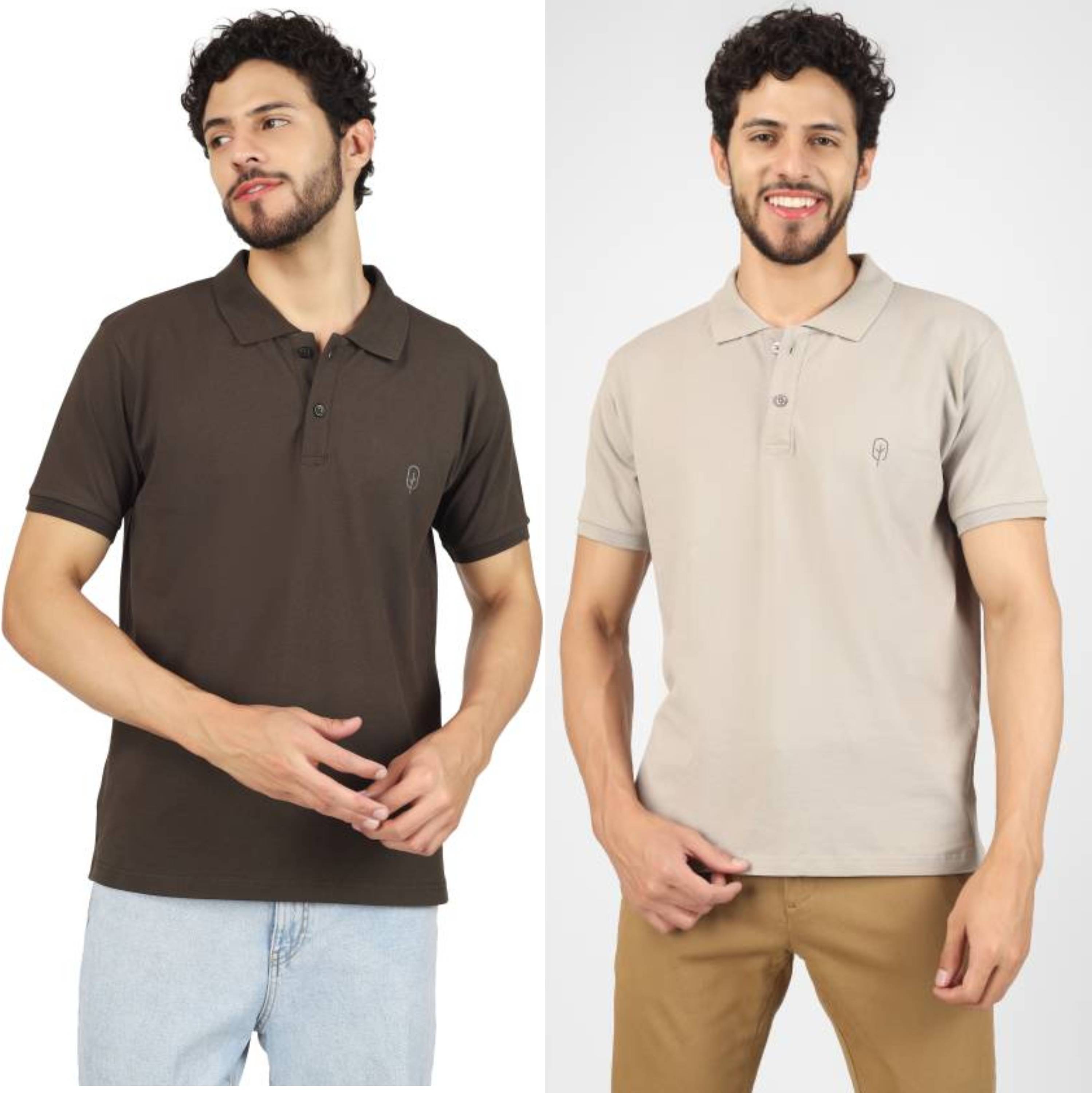 BlueFicus Solid Men Polo Neck Brown, Grey T-Shirt