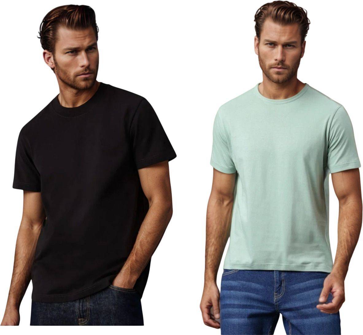 BlueFicus Pack of 2 Men Solid Round Neck Polyester Black, Light Green T-Shirt