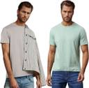 BlueFicus Solid Men Round Neck Grey, Light Green T-Shirt