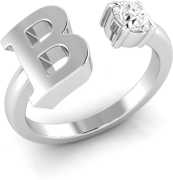 BLUEJWEL 925 Sterling Silver 'B' Initial Ring with CZ Diamond