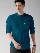 PRAIZY Men Solid Casual Dark Blue Shirt