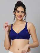 Blue Nixie Cotton Polyster Material T shirt bra with Wirefree support Regular Straps Full Coverage Bra