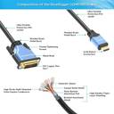BlueRigger DVI Cable 0.9 m High Speed HDMI to DVI Adapter Cable (3 Feet / 0.9 Meter) (Compatible with Mobile, Laptop, Tablet, Mp3, Gaming Device, Black, One Cable)