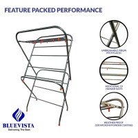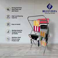 Thanks to its robust pipes and high-grade plastic construction, the Bluevista Cloth Dryer Stand offers enhanced strength and longevity. This combination ensures a high load-bearing capacity, allowing you to dry heavy garments without any concerns. Plus, with its easy installation process, you can quickly set up this stand and enjoy its numerous benefits. Moreover, you can hang a variety of clothes effortlessly using the multiple rods provided, making laundry drying a breeze. Thus, the sturdy material ensures that even heavy blankets and jackets can be effortlessly dried without worrying about this stand buckling under the weight.