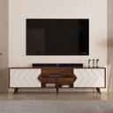BLUEWUD Wilbrome TV Unit With Storage Shelves for Books & Décor Upto 75 Inches TV Engineered Wood TV Entertainment Unit (Finish Color - Maple Brown & White, DIY(Do-It-Yourself))