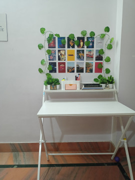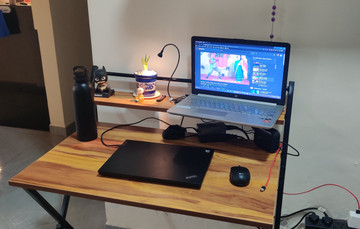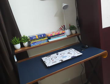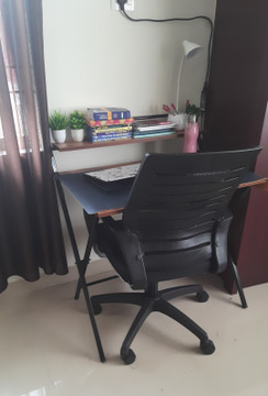 Really good and sturdy product. Foldable and easy to setup. The legs are steel and the table is engineered wood. Really good study table. Careful while keeping laptop, can slide down. Other than that ...more