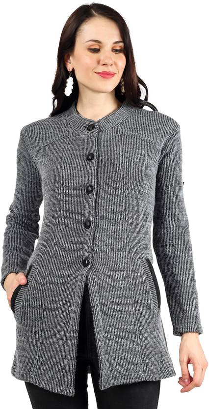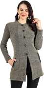 Blushh Collection Woven Round Neck Casual Women Grey Sweater