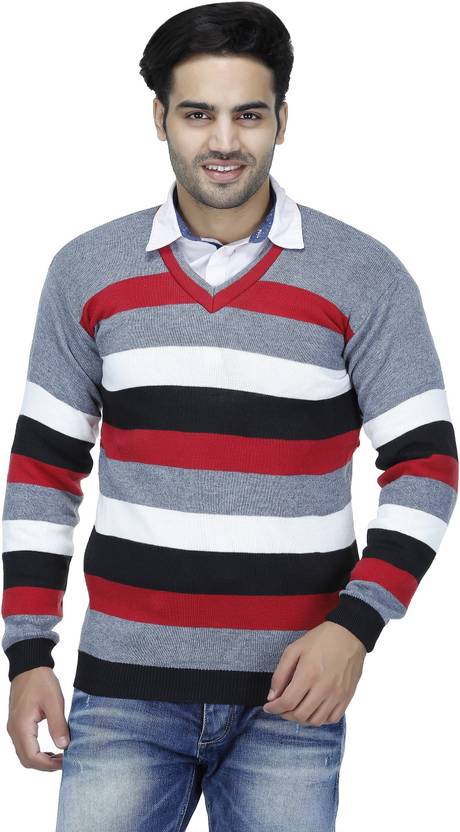 Blushh Collection Woven V Neck Casual Men Multicolor Sweater