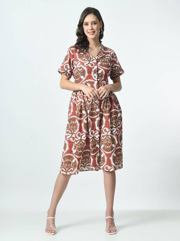 Women A-line Orange Knee Length Dress
