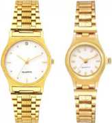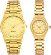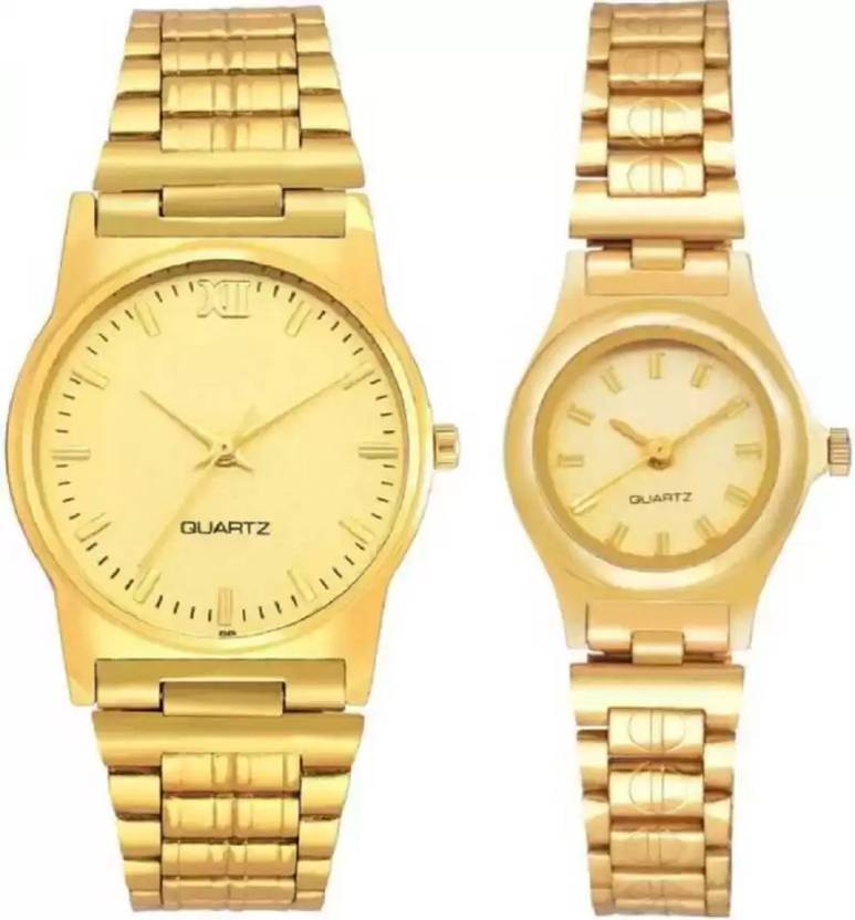 Valentine Special Combo Lover Couple Beautiful Golden Round Watch for Men and Women