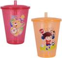 Bluzap (Pack of 6) Cartoon Printed Straw with Sipper-012 Glass Water/Juice Glass (250 ml, Plastic, Multicolor)