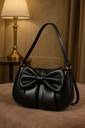 Elevate your accessory collection with this striking Chic Bowknot Pleated Shoulder Bag. The bag's distinguishing feature is the beautifully oversized, structured bow that sits front and center, complemented by a soft, ruched texture along the bottom half. Crafted in smooth, luxurious black material, this bag is a perfect blend of sweetness and sophistication. Its compact, rounded silhouette is ideal for carrying your essentials—phone, wallet, keys, and makeup. The single, comfortable shoulder strap allows it to sit perfectly under the arm for a fashionable, on-trend look. Finished with minimal gold-tone hardware, this bag is a versatile statement piece for both casual outings and chic evening events.