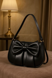 BLVCK THREADZ Black Women Shoulder Bag Chic Bowknot Pleated Black...