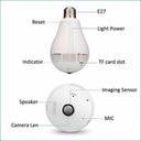1. HD PANORAMIC VIEW: This IP camera records full 1280*960P HD video and audio. It captures faces and small details clearly from across a large room., 2. The 360-degree fish-eye lens allows you see nearly every inch of the space. Don’t forget, give it a try and take HD pictures at party time., 3. TWO-WAY AUDIO: This light bulb camera comes with built-in microphone and speaker, and helps you hear what happens around the camera and talk back through your phone without additional cost for mobile phone calls domestic or international., 4. REMOTE ACCESS: Live streaming and recorded video gives you an on-demand look at your property by the smartphone APP anytime and anywhere with Wi-Fi or mobile data access., 5. Full control of camera & LED lights through mobile application to enable the 3D view of your world on your fingertips. Switch ON/OFF & change LED light visibilty from mobile App.