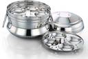 Plasma Welded Container; Works on Induction Cooktop and LPG Stoves., Dynamically structured to a compact design occupying minimum shelf space., Steams deliciously softidlies and can steam cook noodles,vegetable and momos, Made Of Stainless Steel, Mini hole mechanism to serve as a check for thick and proper batter for soft idlis