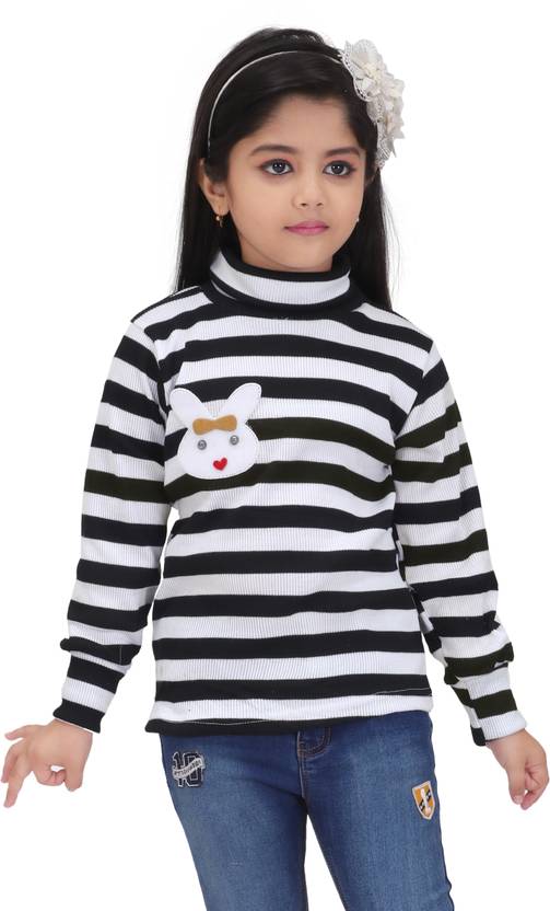 এমএস সালমা স্ট্রাইপড হাই নেক ক্যাজুয়াল মেয়েদের জন্য কালো, সাদা সোয়েটার