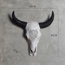 Bull Skull Sculpture Rustic Wall Hanging White Carved Statue for Office Home