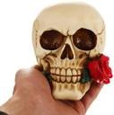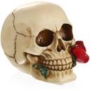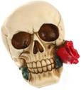 BNF Romantic 3D Skeleton Skull with Rose in Mouth Model Head Bone Ornament Decorative Showpiece - 10 cm (Resin, Multicolor)