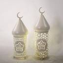 ||Description:|||Elegant Decor: Simply beautifully embellished lantern features a detailed hollow out iron crafts frame with fairy lights, a beautiful, timeless accessory for decorating your home .|Eid Mubarak Ramadan Decoration: with led lights inside, warm light color, Interior fairy lights add a romantic glow .|Battery Powered: 3 AAA batteries powered, but not include, moon star pattern decorative .|Widely Use: perfect for birthday party, halloween, Christmas, wedding, or decorating your bedroom, garden , yard, patio , kids room, dorm, clear umbrella, garland, or designing any other unique lighting projects .|Great Table Centerpieces: decorative lanterns can be displayed hanging or on a table top, living room, cabinet, bedside, fireplace, bedroom, drawer for Bohemian style home decor or special event lighting .|||Specification:|||Material: Iron|Color: White|||Package Includes:|||1 Piece Lantern with Fairy Light|||