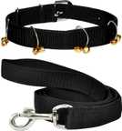 BODY BUILDING Dog Belt Combo of 1 inch Black Ghungroo Collar with Black Leash Specially for Medium Breeds Dog Collar & Leash (Medium, Black Ghungroo Collar & Black Leash)