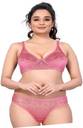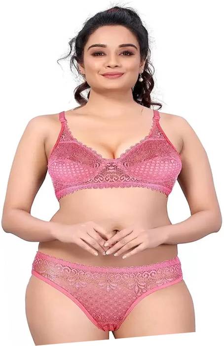 Body Lable Bra & Panty Set Self Design Pink Lingerie Set