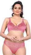 Bra & Panty Set Self Design Pink Lingerie Set
