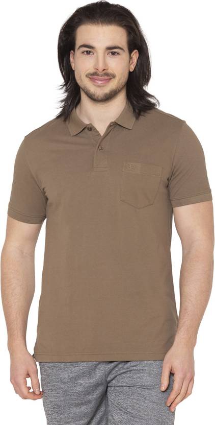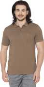 BODYACTIVE Men Solid Polo Neck Cotton Blend Brown T-Shirt