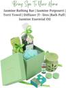Jasmine Soap Spa Set � Divine Bath & Body Care Kit (Jasmine Bathing Bar 100gms, Face Terry Towel, Aroma Diffuser, Jasmine Potpourri, Bath Puff, 2 Tea Lites) Skin Care Set & Kits