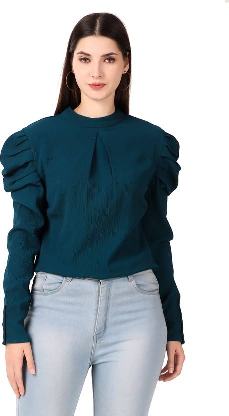 Premium Quality Imported Textured Fabric, Stylish Band Collar with Back Single Button Opening, Chic Long Sleeves with Button Decoration, Trendy Gathered Look at Armhole, Versatile Wardrobe Staple