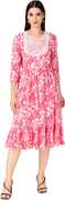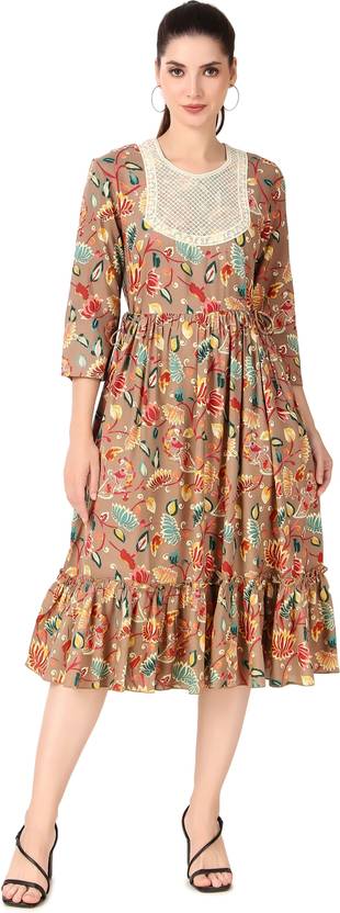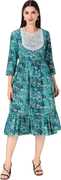 BoheeWohee Women A-Line Viscose Rayon Ethnic Midi Kurti Dress with Side Ties