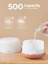LARGE CAPACITY AND GREAT MIST OUTPUT This ultrasonic aroma diffuser and humidifier imparts vibrations of high frequency 2.4 million times/sec. The 500ml fragrance diffuser oil is extremely quiet and the auto shut-off technology making it the best home diffuser, office humidifier and baby humidifier. 500ml capacity for up to 7-8 hours of mist. Suitable for a room up to 250 square feet for uniformly spread small humidifier for bedroom.