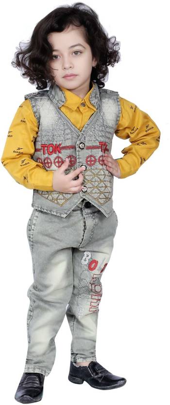 Bold Born Boys Casual Jacket Shirt, Jeans (Mustard)