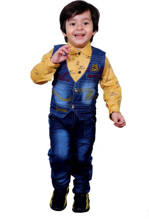 Bold Born Boys Party(Festive) Jacket Shirt, Jeans (Fawn)